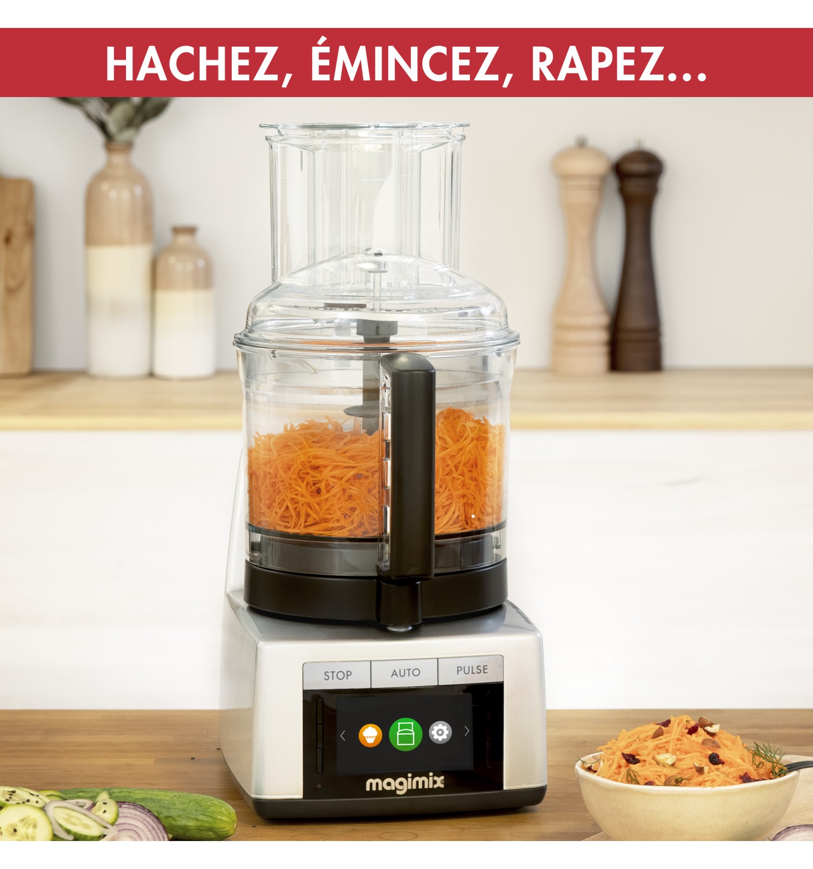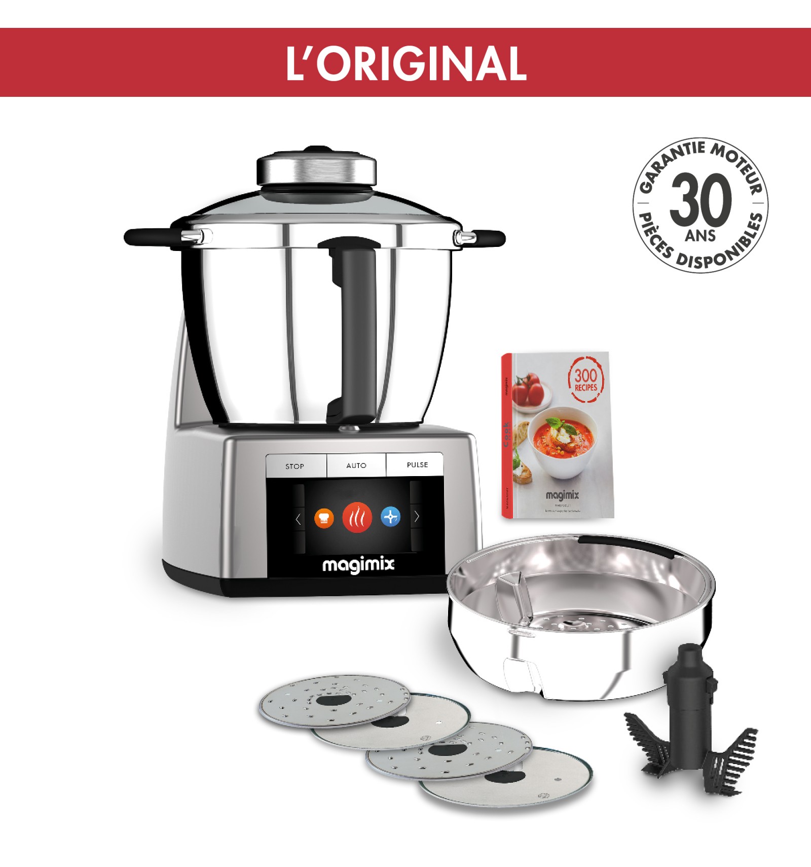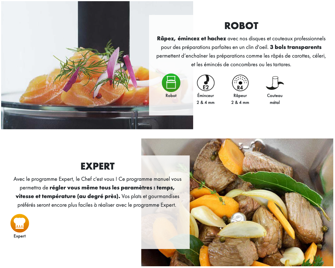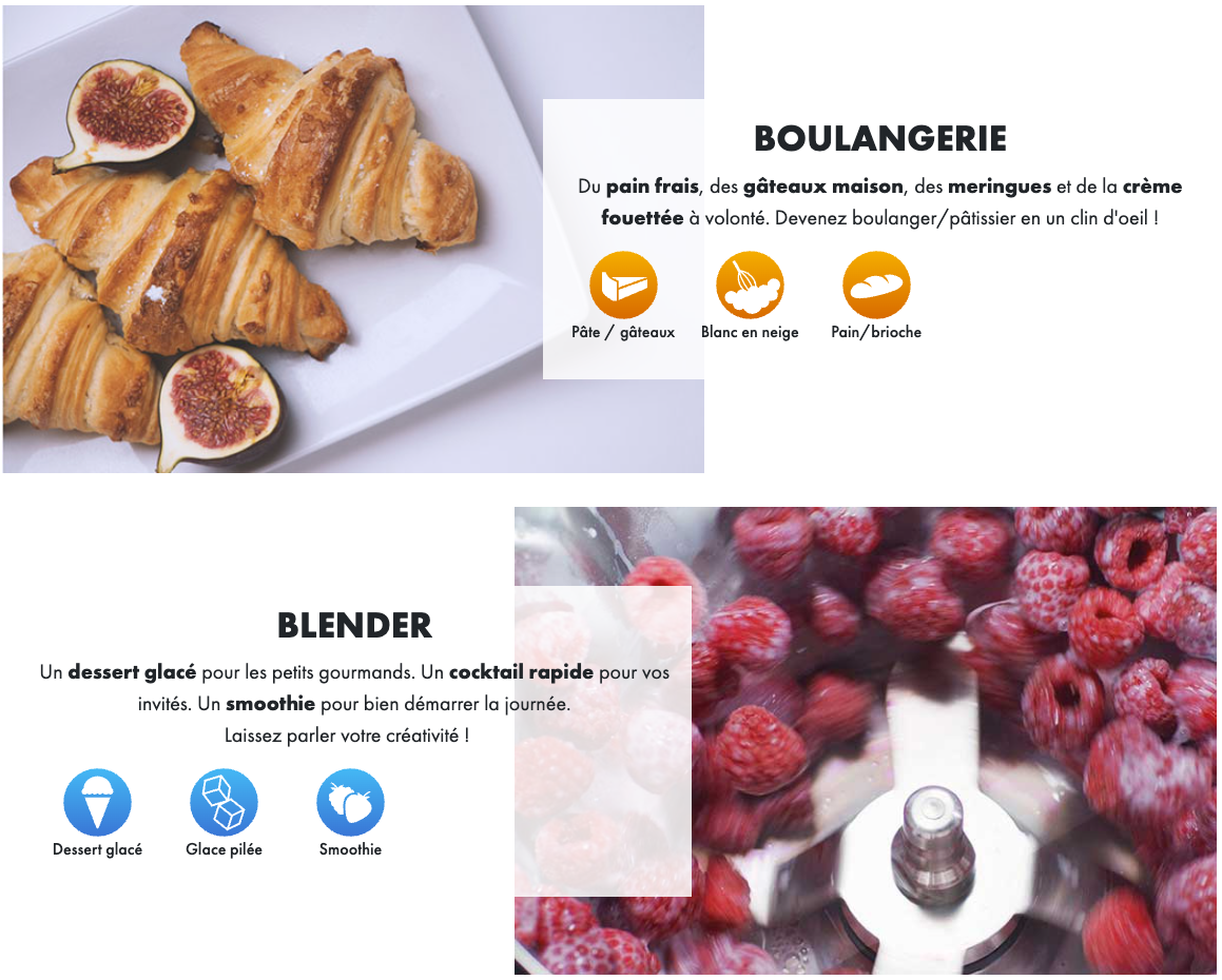 | Matériaux | bol inox 18/10; couvercle verre, disques/couteaux en acier inoxydable (Sabatier); 0% BPA |