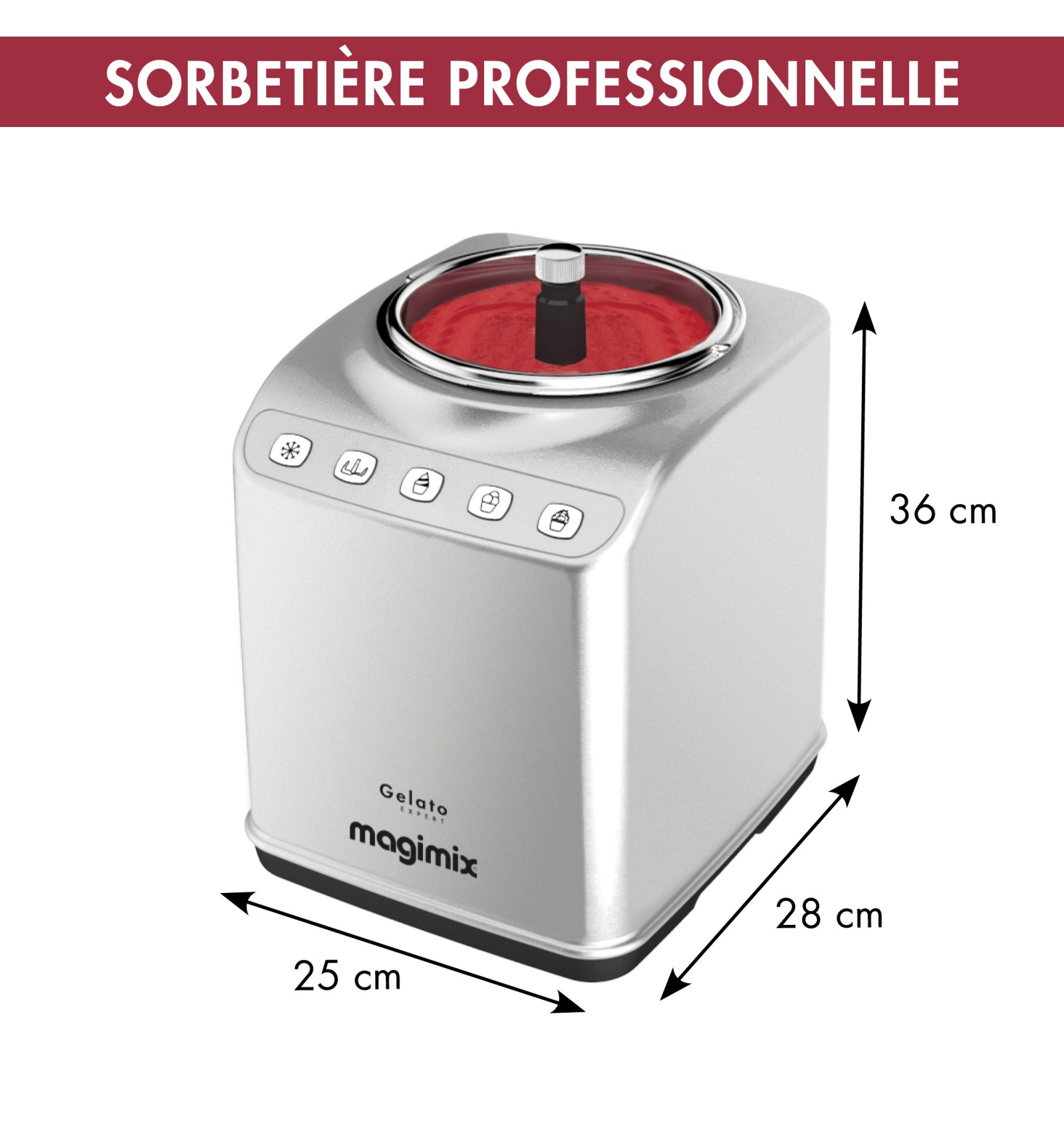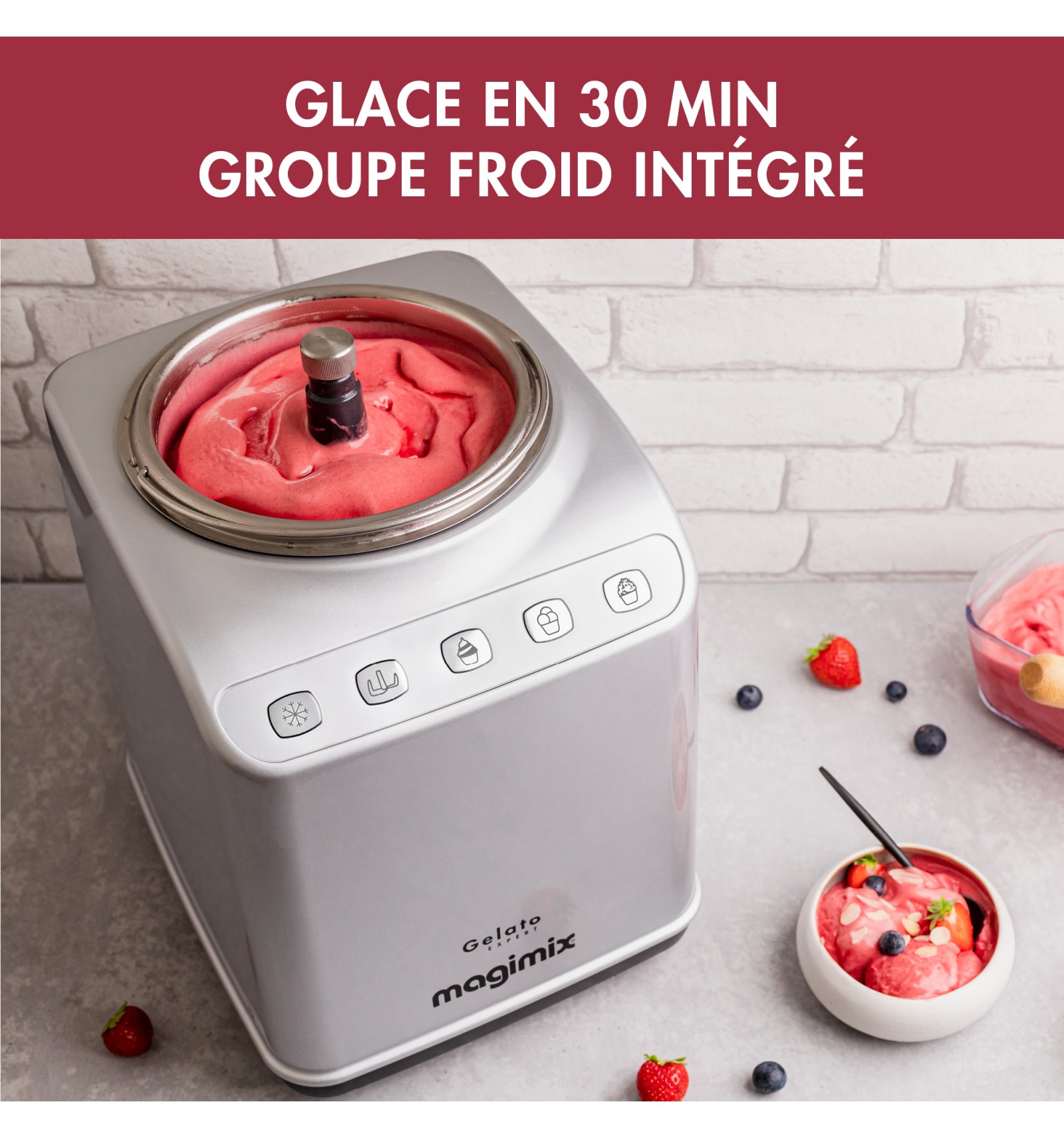 Fini le temps d'attente interminable, grâce à son groupe froid intégré, en seulement 30 minutes, vous pourrez savourer des glaces, sorbets, yaourts glacés et granités maison, 100 % naturels et dignes des plus grands professionnels de la gastronomie.