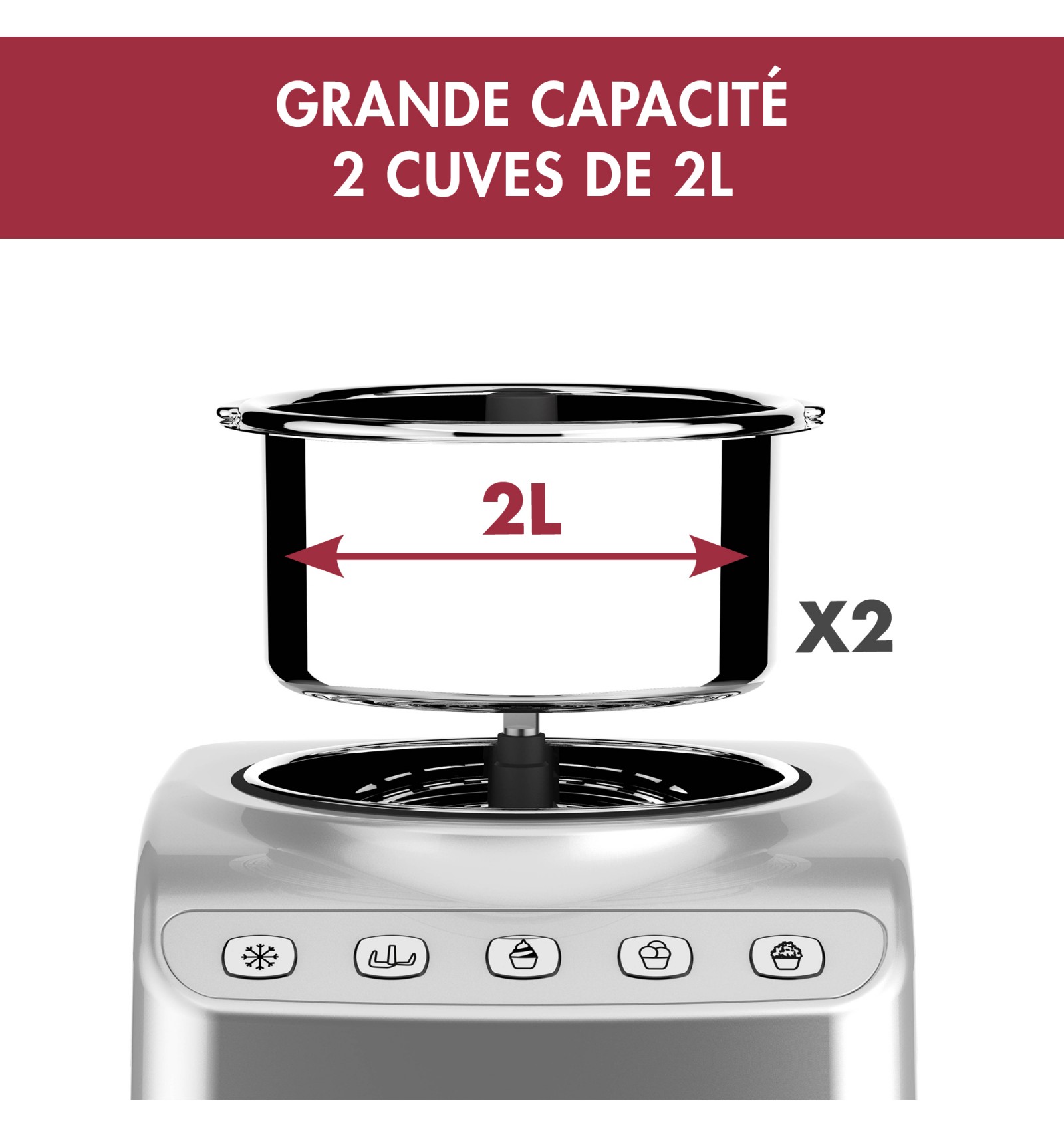De plus, grâce à ses 2 cuves en inox de 2L, vous pouvez enchaîner les préparations sans interruption, pour des moments de partage gourmands et inoubliables.