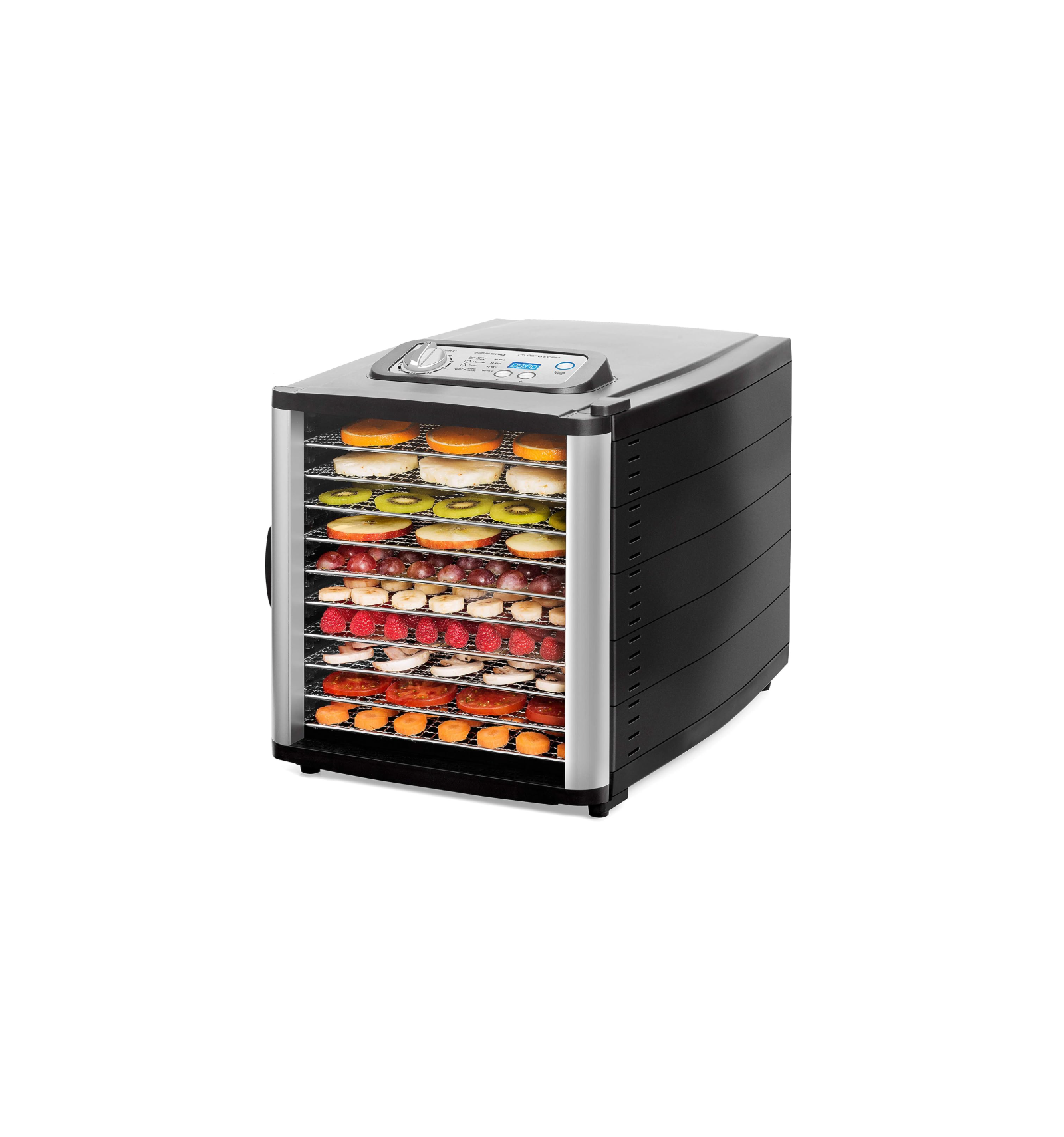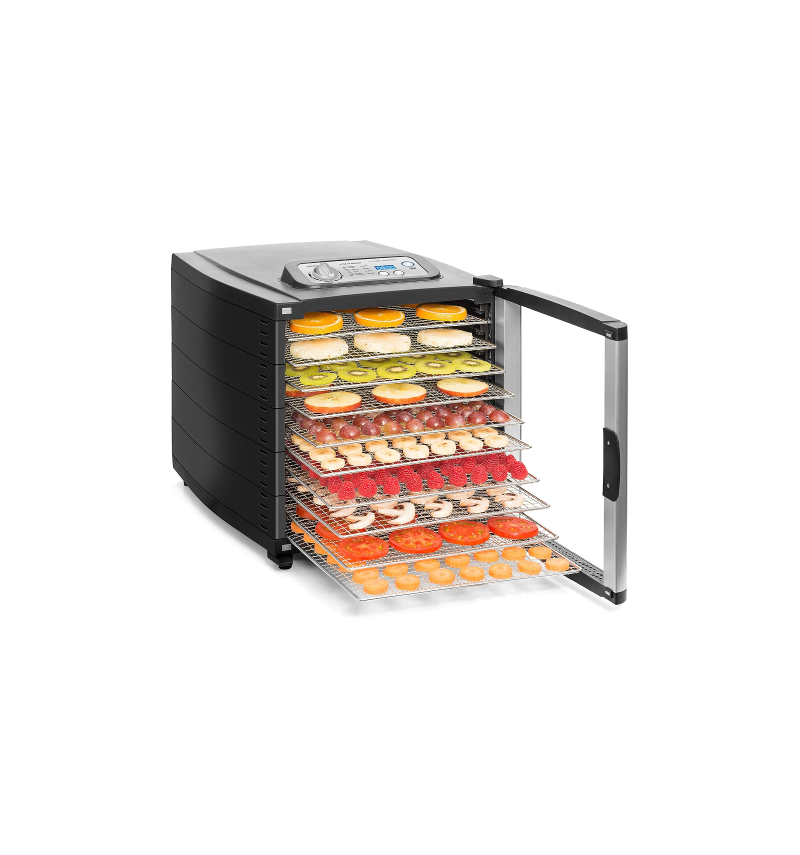 La température réglable de 35°C à 75°C, la facilité et la rapidité d'emploi offrent des conditions optimales pour préserver le goût et la qualité nutritionnelle de vos aliments. Avec une distribution horizontale d'air chaud et sec, le séchoir alimentaire déshydrate efficacement et uniformément vos aliments.