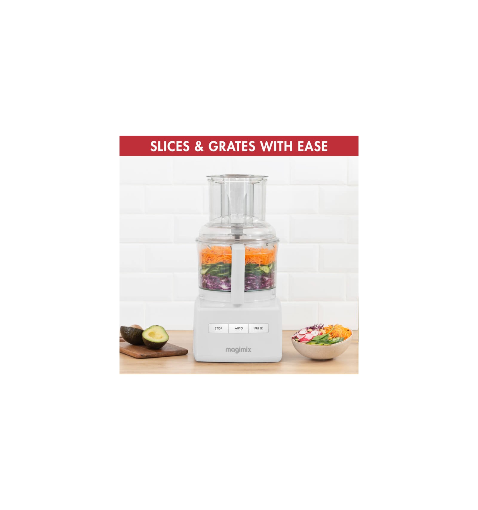 Le robot multifonction CS4200XL de Magimix est votre allié pour cuisiner facilement au quotidien. Le robot multifonction Magimix vous permet d’émincer et râper des légumes, mixer des soupes, pétrir des pâtes, battre des blancs en neige, hacher et émulsionner des sauces.